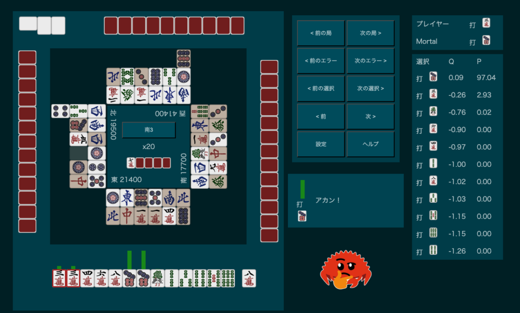 萬子を整理するのが正解かな、と思っていましたがAIはことごとく7筒切り。