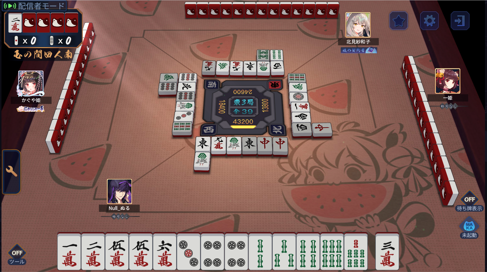・東3局 0本場 供託なし