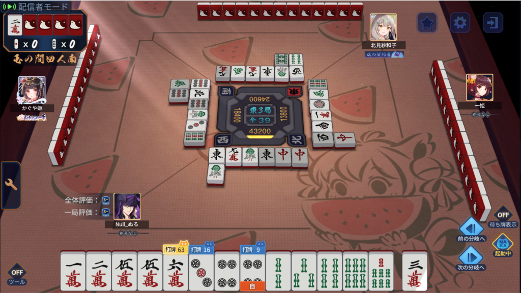 完全1向聴の形にはなるものの、6萬と3筒の差はなんだろうとしばらく考えていました。